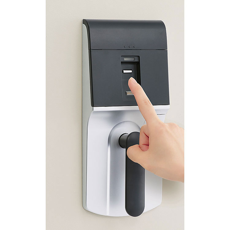 指紋認証には、コンパクトな指紋リーダーで多くの指紋情報を読み込める「スライド式」を採用しています。人数や指の種類を問わず、10指までの登録が可能です。※万一を想定して、1人2指の登録を勧めています。