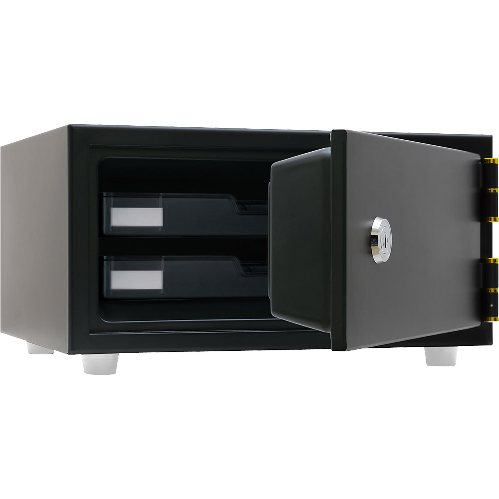 金庫本体色と同じトレーがおしゃれ。A4用紙が収納可能で、重要書類、通帳、印鑑、母子手帳、思い出の写真など大切に安心して保管ができます。