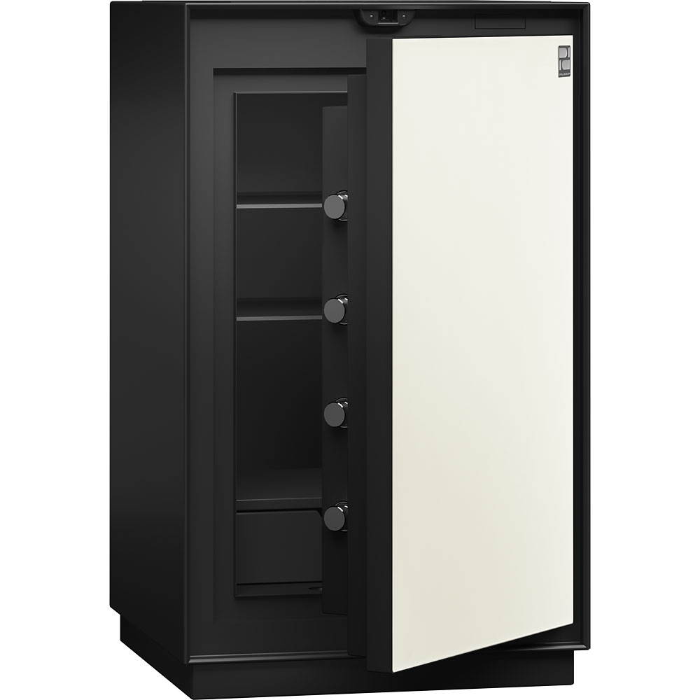 堂々と隠さず見せる!凛とした佇まいの高級感溢れるプレミアム金庫が登場しました。直線的なフォルムの美しさ、最先端のテクノロジー、耐火性能に加え防盗対策も兼ね備えた上級クラスの金庫です。指紋認証/タッチパネル式テンキーの便利な2WAYロックシステム。扉の4方向全てに直径は32mmのカンヌキを計12本装備。リロッキング機能と三層構造の扉など、米国UL防盗テストの基準をクリアした高い防犯性能。6種の豊富な素材とカラーからお選び下さい。