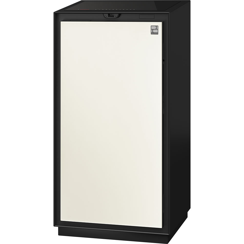 空間を魅せる存在感は、正に隠す金庫ではなく『大切な物を美しく護る』最上級クラスの金庫。ハイテクなメタル技術による美しい直線ラインと6色のフロントカラーはラグジュアリーな空間を多彩に演出。金庫上部には、強化ガラス面のタッチパネルと指紋認証式センサーを装備しています。