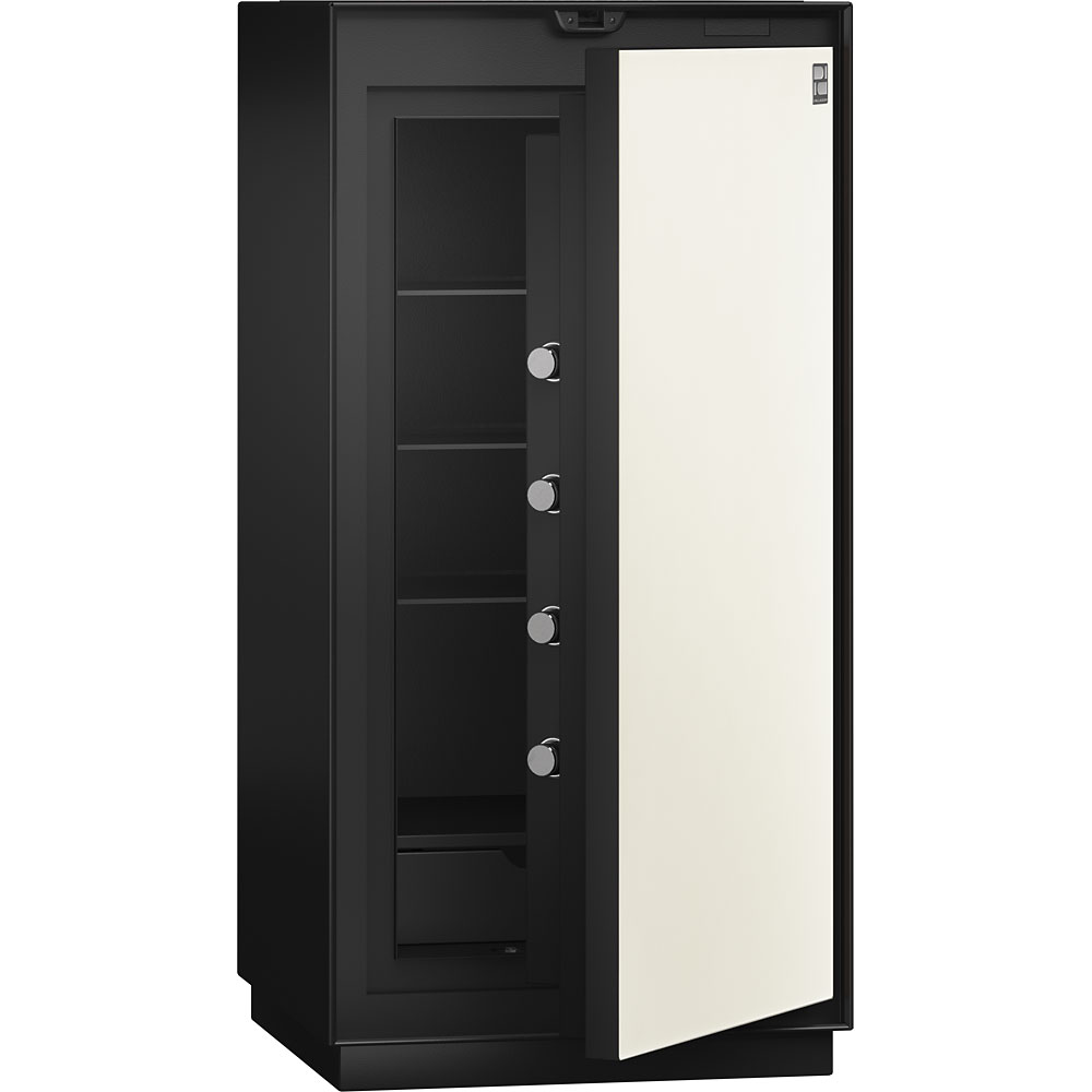 堂々と隠さず見せる!凛とした佇まいの高級感溢れるプレミアム金庫が登場しました。直線的なフォルムの美しさ、最先端のテクノロジー、耐火性能に加え防盗対策も兼ね備えた上級クラスの金庫です。指紋認証/タッチパネル式テンキーの便利な2WAYロックシステム。扉の4方向全てに直径は32mmのカンヌキを計12本装備。リロッキング機能と三層構造の扉など、米国UL防盗テストの基準をクリアした高い防犯性能。6種の豊富な素材とカラーからお選び下さい。