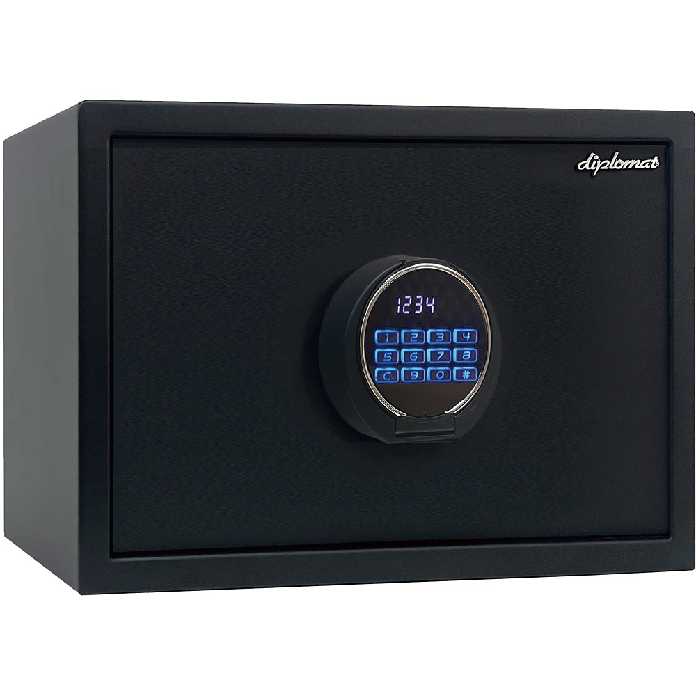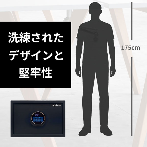 | 備考 | 【商品の特長】 ●本体は人気の高いブラックのマット仕上げ。 ●正面扉は厚さ4.0mm、その他本体も2.0mmの堅牢な構造。 ●カンヌキはテンキー操作により自動的に開閉。カンヌキは2本、直径は20mmで安心の太さ。 ●金庫を開けた時、庫内が見易いLEDライトが一定時間点灯。 ●暗証番号を忘れた際に便利な緊急解除キー付。 【主な機能】 ●4〜6桁までの任意の暗証番号が設定可能。 ●衝撃や傾きに感知するアラーム機能付き ●5回の入力間違えで5分間自動ロック機能付き。 ●電池交換の時期をディスプレイにてお知らせ。 【その他】 ●底部はカーペット敷き。背面と底面に固定用の穴付き ●購入後のご使用方法等は安心のカスタマーサービスセンターが対応。 ●非耐火製品 ●保証期間は12ヵ月 |