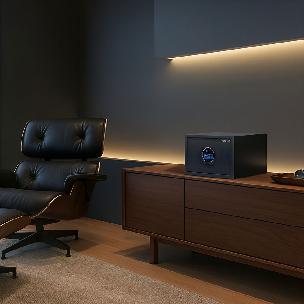 日常の大切なものを「いつもの場所」でしっかりと守る。軽量設計で置き場所を選ばず、家庭やオフィス、店舗の受付スペースにもぴったりです。
